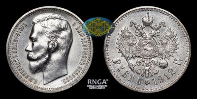 Рубль 1912 года, ЭБ. Тип 1912-1913 годов. Тираж 2 111 221 штука. Санкт-Петербургский монетный двор