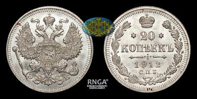 20 Копеек 1912 года, СПБ ЭБ. Тираж 15 000 008 штук (все типы). Санкт-Петербургский монетный двор