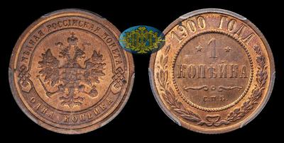 Копейка 1900 года, СПБ. Тираж 30 000 000 штук. Завод Розенкранца в Санкт-Петербурге