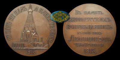 МЕДАЛЬ 1913 ГОДА "В ПАМЯТЬ 22 000 РУССКИХ ВОИНОВ, ПАВШИХ В БИТВЕ ПРИ ЛЕЙПЦИГЕ"