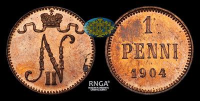 Пенни 1904 года. Тираж 1 396 064 штуки. Гельсингфорсский монетный двор