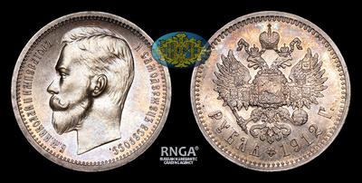 Рубль 1912 года, ЭБ. Тип 1912-1913 годов. Тираж 2 111 221 штука. Санкт-Петербургский монетный двор