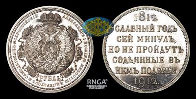 Рубль 1912 года, ЭБ. "В память 100-летия Отечественной войны 1812 года". Санкт-Петербургский монетный двор
