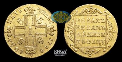 5 РУБЛЕЙ 1798 ГОДА, СМ ФЦ. ТИП 1798-1801 ГОДОВ. САНКТ-ПЕТЕРБУРГСКИЙ МОНЕТНЫЙ ДВОР