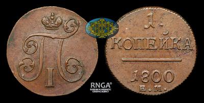 Копейка 1800 года, ЕМ. Тираж 9 792 600 штук. Екатеринбургский монетный двор