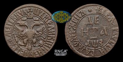 Денга 1707 года. Тираж неизвестен. Набережный монетный двор