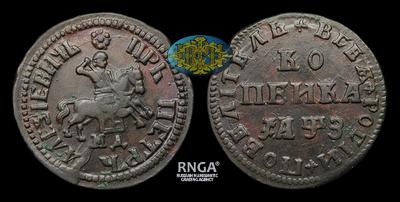Копейка 1707 года, МД. Тираж неизвестен. Кадашевский монетный двор
