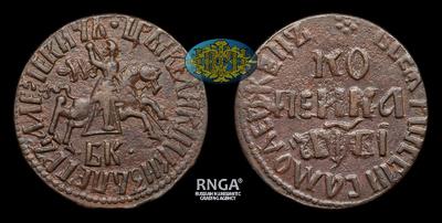 Аверс: Точка сверху. «Чепрак – Трапеция». Короткий чепрак. Передние копыта коня согнуты. «БК» сближены между точками.
