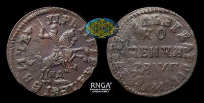 Копейка 1713 года, НД. Тираж 1 740 500 штук. Набережный монетный двор
