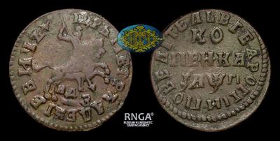 Копейка 1713 года, НДЗ. Тираж 1 740 500 штук. Набережный монетный двор