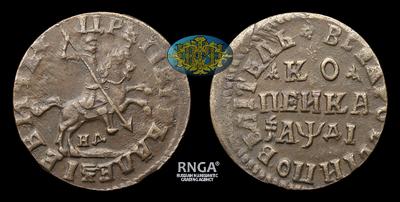 Копейка 1714 года, НД. Тираж неизвестен. Набережный монетный двор