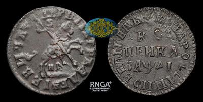 Копейка 1714 года, НД. Тираж неизвестен. Набережный монетный двор