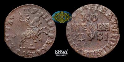 Копейка 1716 года, НД. Тираж неизвестен. Набережный монетный двор