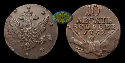 10 КОПЕЕК 1762 ГОДА. Тираж неизвестен. Монетный двор неизвестен