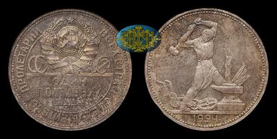 Аверс: Полтинник 1924 года, ПЛ. Ленинградский монетный двор