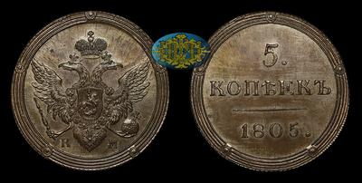 Новоделы медных монет крупных номиналов эпохи правления Александра I очень редки.