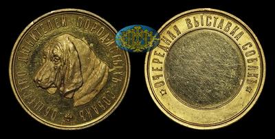 Общество Любителей Породистых Собак представляло собой закрытую, не больше 250 членов, в основном дворянскую организацию. Вступить в члены общества не дворянину было крайне затруднительно. Главной целью являлась пропаганда породистых собак через проведение регулярных “выставок породы” с поощрением лучших участников дипломами, почетными дипломами, жетонами и медалями. Изготовлением медалей занимался Санкт-Петербургский Монетный двор. Штемпели медалей были вырезаны известным медальером Л.Х.Штейнманом (1848-1897).