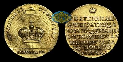 Жетон 1762 года. “В память Коронации Императрицы Екатерины II, 22 Сентября 1762 года”