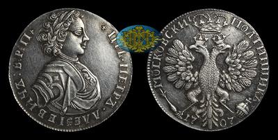 Новодельная полтина 1707 года исключительно редка. Всего несколько раз выставлялась на торги за долгую историю проведения аукционов.