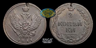 2 Копейки 1811 года, КМ ПБ. Тип 1810-1812 годов, т.н. "Глухарь"