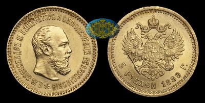 5 Рублей 1889 года, АГ АГ. Тип 1886-1894 годов