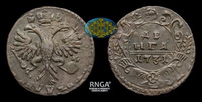 Денга 1731 года. Перечекан из копейки 1704-1718 годов