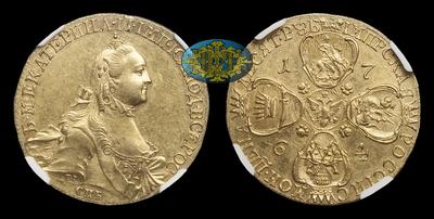 10 Рублей 1764 года, СПБ TI. Тип 1764-1765 годов, т.н. "С шарфом на шее"