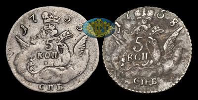 5 Копеек 1755 года, СПБ. Тип 1755-1756 годов, т.н. “Большеформатные”