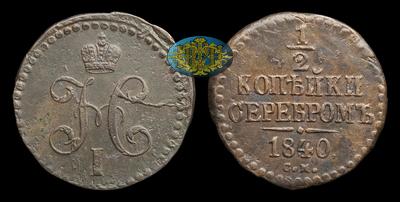 1/2 Копейки 1840 года, СМ. Тип 1839-1847 годов