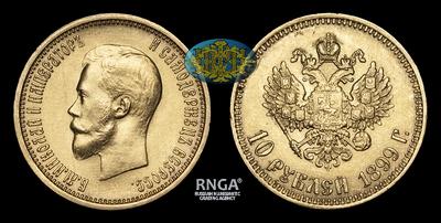 10 Рублей 1899 года, АГ. Тип 1898, 1899, 1901, 1904 годов. Советская чеканка 1923-1924 годов