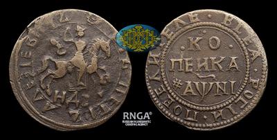 Реверс: Точка сверху. По одной точке сверху и по сторонам «КО» в «КОПЕЙКА». Буквы даты малые. С титло. Круговая надпись в линейном и точечном ободках. «РОСIИ ПОВЕЛИТЕЛЬ».