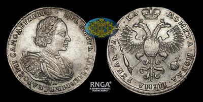 Аверс: Малая розетка над головой. Голова меньше. Пальмовая ветвь на груди. “РОСИI”. Точки разделяют круговую надпись.