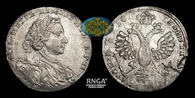 Аверс: Портрет 1707-1710 годов. Голова большая. Бюст широкий. Ленты у лаврового венка.