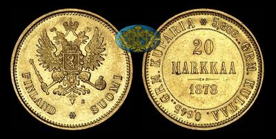 20 марок 1878 года, S Для Финляндии. Гельсингфорсский монетный двор.