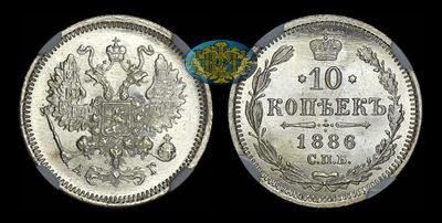 10 копеек 1886 года, СПБ-АГ