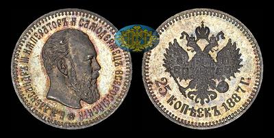 Ярко выраженный матовый рельеф на глянцевом поле. Красивая радужная патина. Превосходный коллекционный экземпляр. Очень редка в качестве PROOF.