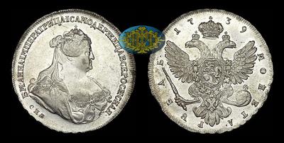 Рубль 1739 года, СПБ Санкт-Петербургский монетный двор. Портрет образца 1740 года.