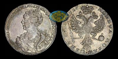 Рубль 1726 года, без букв Портрет императрицы влево. Красный монетный двор.