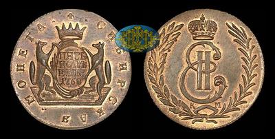 5 копеек 1768 года, КМ, "Сибирские". Новодел С оригинальной карточкой коллекционера.