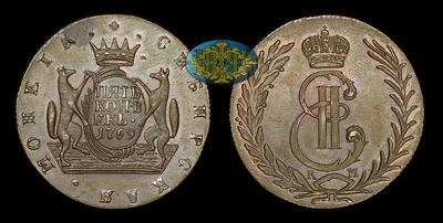 5 копеек 1769 года, КМ, "Сибирские". Новодел С оригинальной карточкой коллекционера.