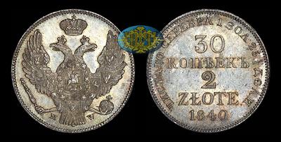 30 копеек - 2 злотых 1840 года, MW