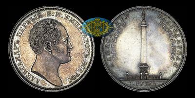 Рубль 1834 года Чеканена в память открытия Александровской колонны в Санкт-Петербурге. В обрезе портрета "GUBE F.".