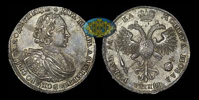 Рубль 1721 года, К Кадашевский монетный двор. Над головой большая розетка.