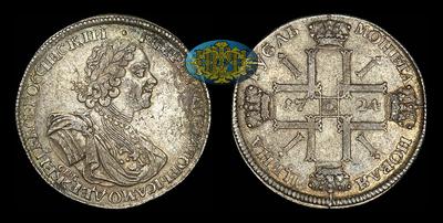 Рубль 1724 года, СПБ "Солнечник". Без наплечников. СПБ под бюстом. Над головой точка.