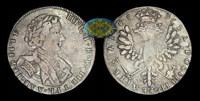 Тинф 1708 года, без букв Красный монетный двор. Малая голова. Трилистник после "ЦРЬ" в легенде аверса.