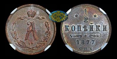 Яркий штемпельный блеск под привлекательной патиной с красно-синими переливами.