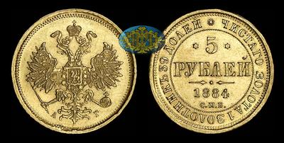 5 рублей 1884 года, СПБ-АГ
