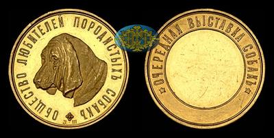 Общество любителей породистых собак представляло собой закрытую, не больше 250 членов, в основном дворянскую организацию. Вступить в члены общества не дворянину было крайне затруднительно. Главной целью являлась пропаганда породистых собак через проведение регулярных «выставок породы» с поощрением лучших участников дипломами, почетными дипломами, жетонами и медалями. Изготовлением медалей занимался С.-Петербургский Монетный двор. Штемпели медалей были вырезаны известным медальером Л.Х. Штейнманом (1848-1897).