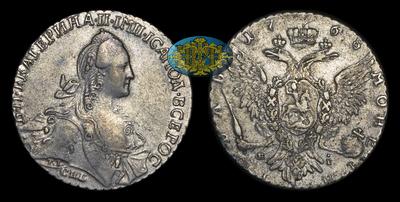 Тип 1766 - 1768 годов. т.н. «Грубый чекан». Одна из очень редких типовых разновидностей рублей Екатерины II