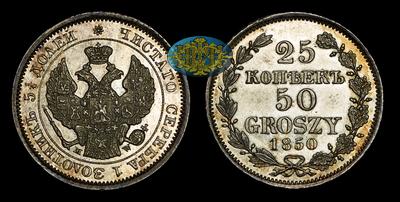 25 КОПЕЕК 50 ГРОШЕЙ 1850 ГОДА, MW